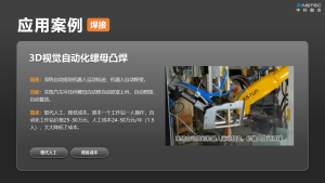 顺利获得高精度的深度传感器,3D相机可以实时扫描工件的表面形状、位置、姿态以及表面缺陷等数据。这使得焊接机器人能够在焊接前快速获取工件的完整三维模型,从而避免了传统焊接中需要手动示教的繁琐过程。
